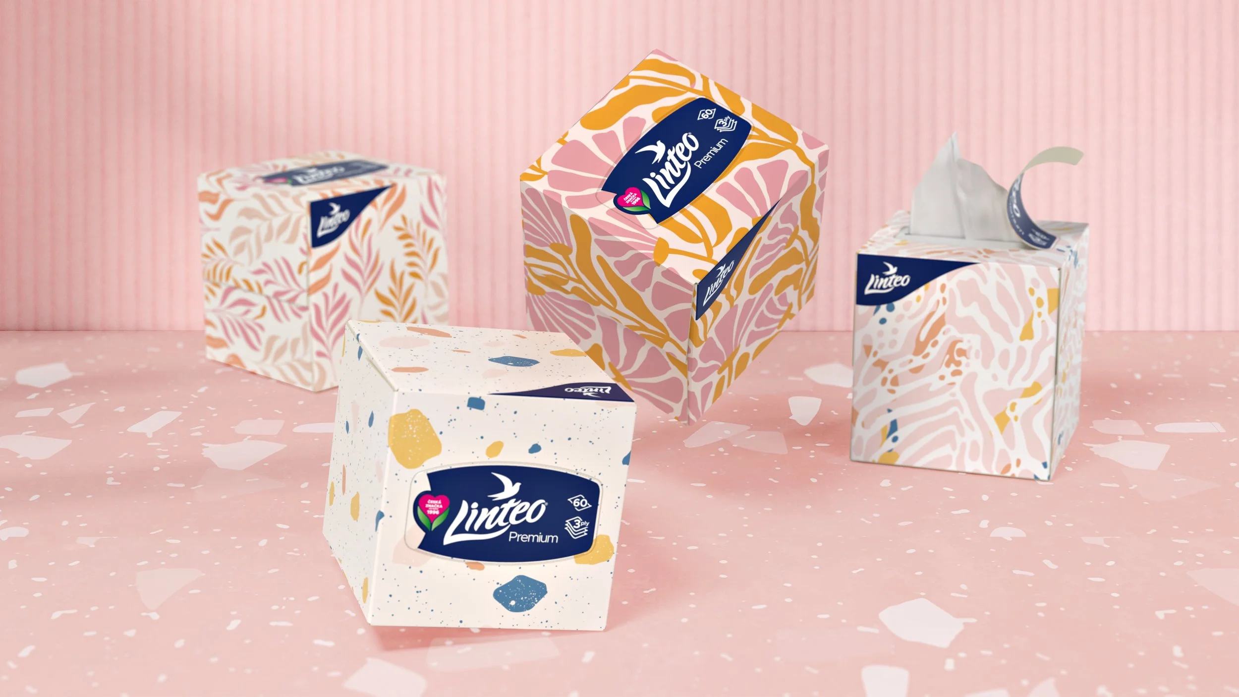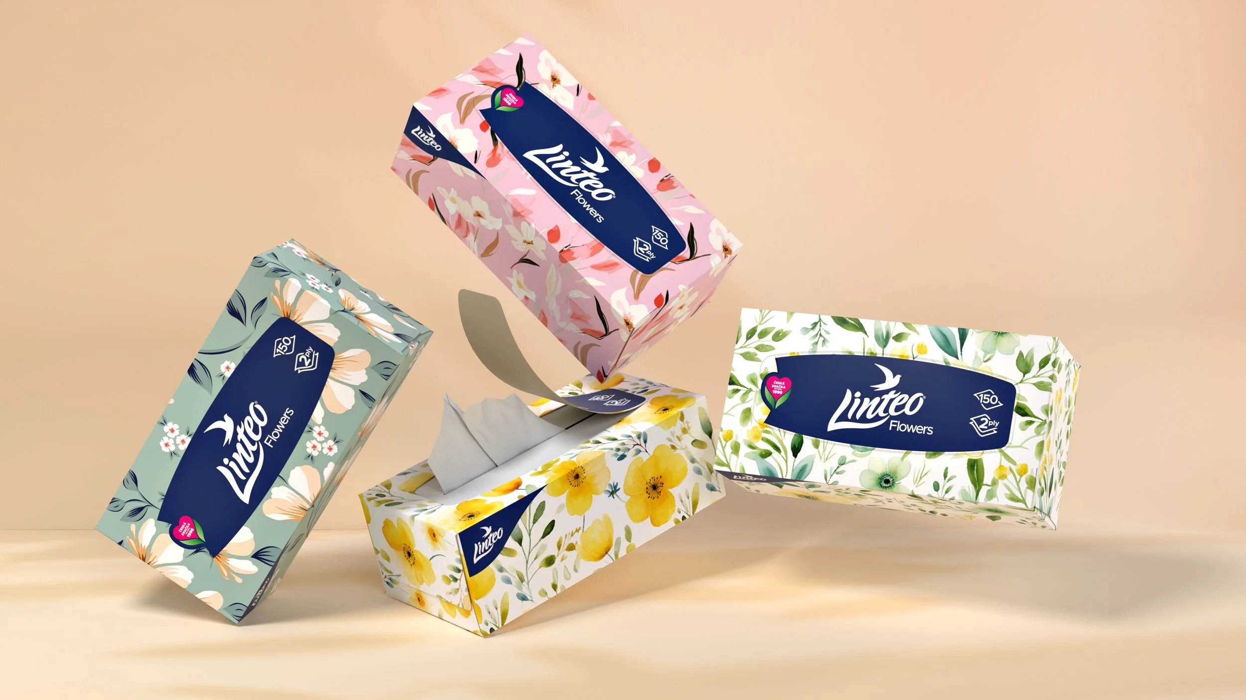 We went beyond function to make Linteo beautifully present in everyday spaces. The line of premium tissue boxes brings an extra touch of charm — keeping the flower theme, but elevating it into floral, decorative designs that complement interiors as much as they complete the range. Elegant and expressive, they turn everyday function into quiet beauty.
